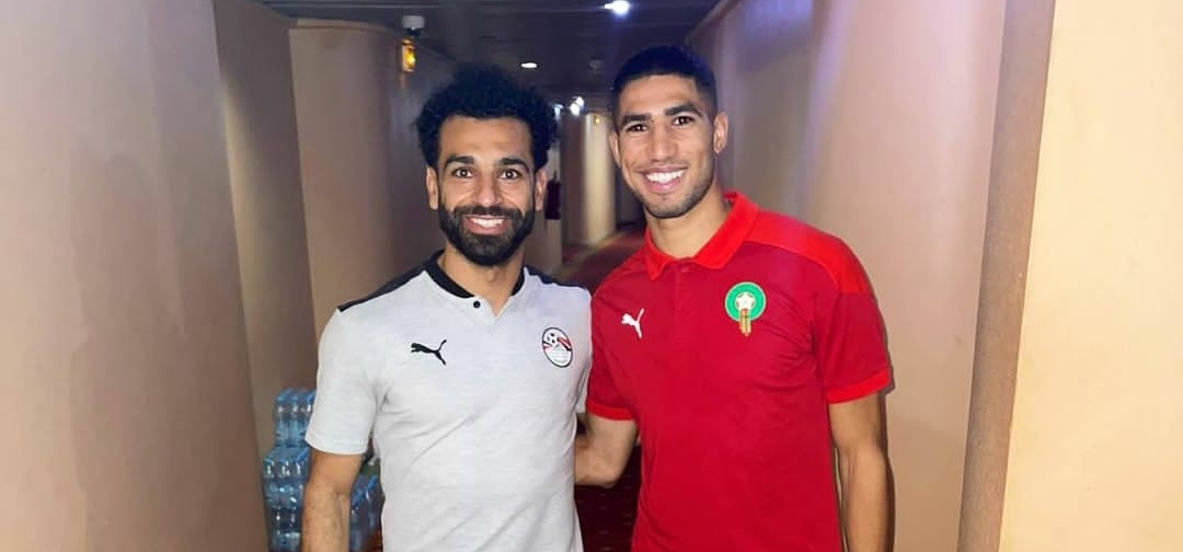 نشر الدولي المغربي، أشرف حكيمي، عبر حسابه على موقع التواصل الاجتماعي انستغرام، صورة تجمعه بالدولي المصري محمد صلاح.